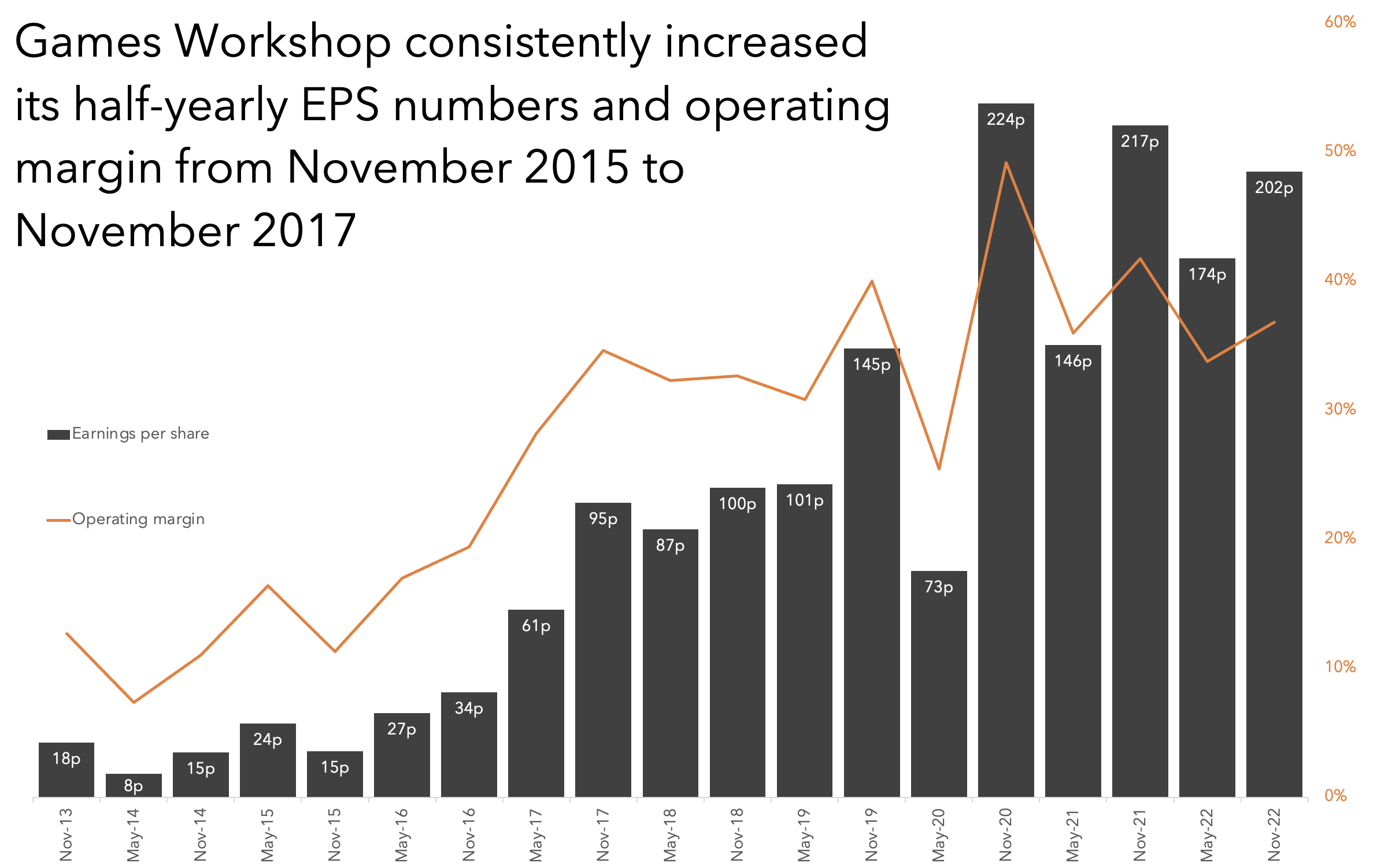 I don’t mean to suggest that Games Workshop simply got lucky. From reading the strategic report sections authored by Kevin Rountree, he talked a lot about building online communities, and promoting the company via social media. The company seemed well aware of the potential there. The company increased its operating margins from under 10% in the six months to May 2014 to close to 20% in half year up to May 2016, so the cost cutting was working before Stranger Things hit the small screen. And looking back at the half yearly numbers licensing and royalty revenues had started to creep up before the show released.