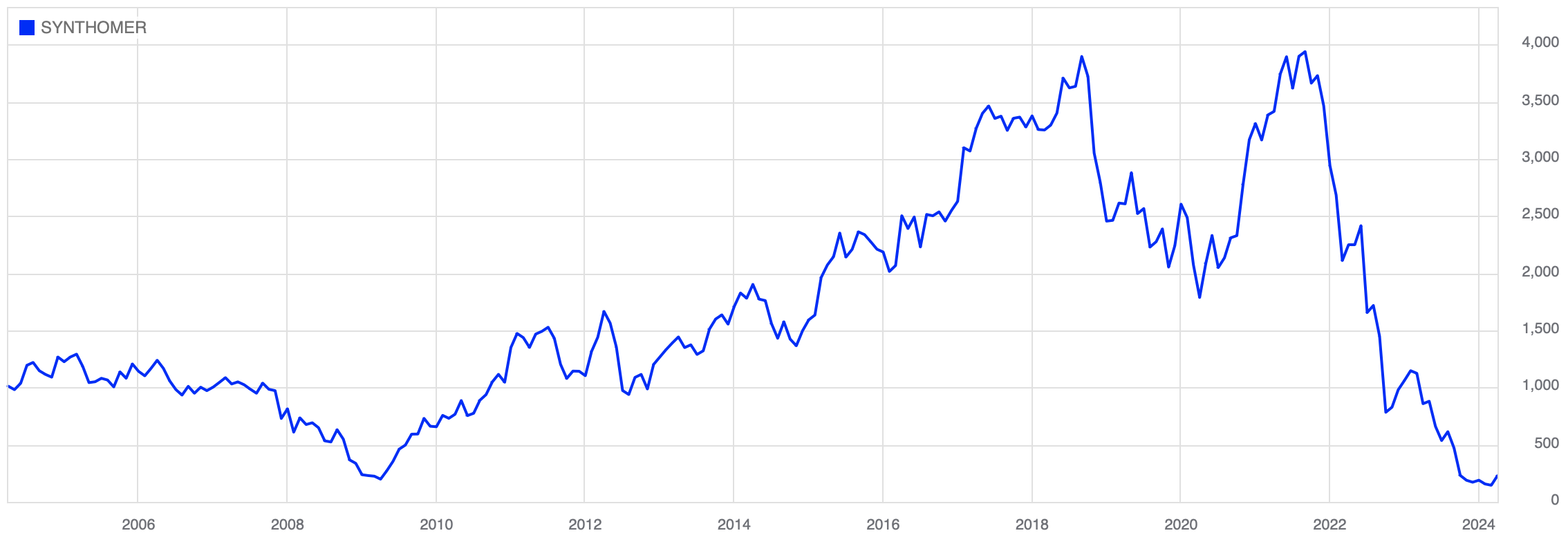Before we get into the final results, let’s put this price move in context. The Synthomer share price is back to where is was in September 2023. But, that still leaves it 94% below its June 2021 high of 4,066p. This is a big move off a relatively small base. And it could have been a smaller base.