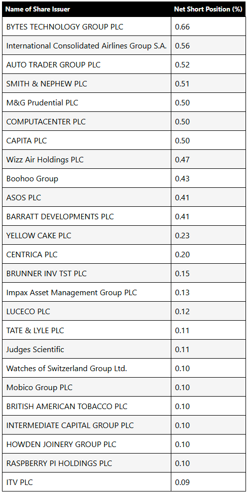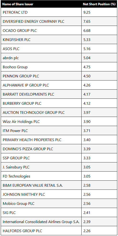 Here are the top 25 most shorted UK stocks: